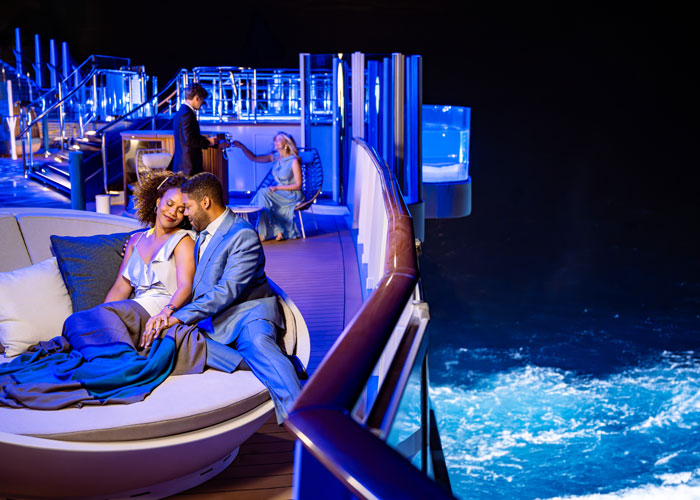 ウェイク・ビュー・テラス:船尾に位置し、航跡を眺めながら楽しめるインフィニティプールやバーがあるエリアです。